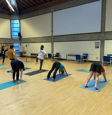 We teach ashtanga yoga from 8-9am on Tuesdays and Fridays at the University Centre Main Hall (2nd floor) on Granta Place (https://g.co/kgs/uvvGjA2).